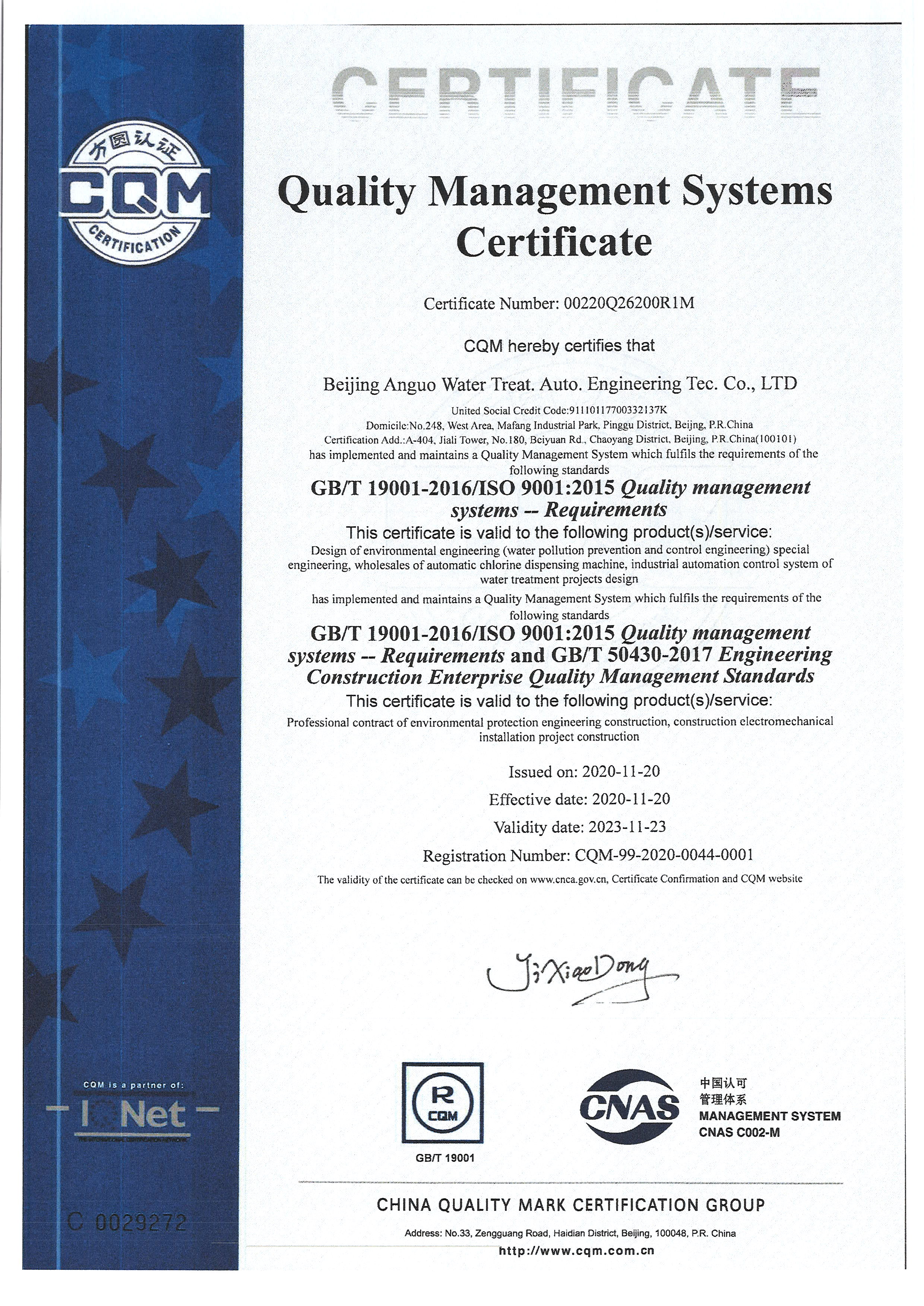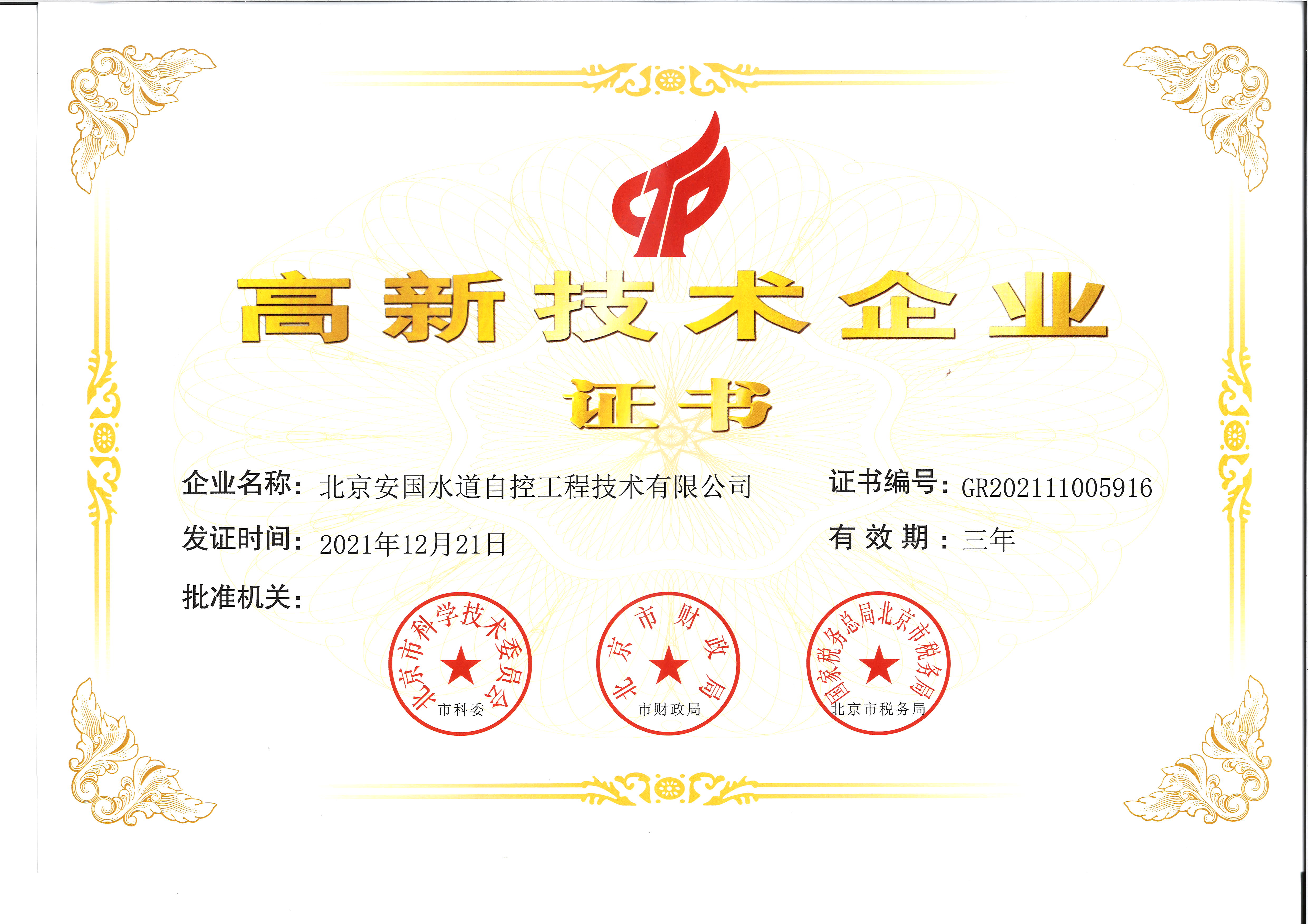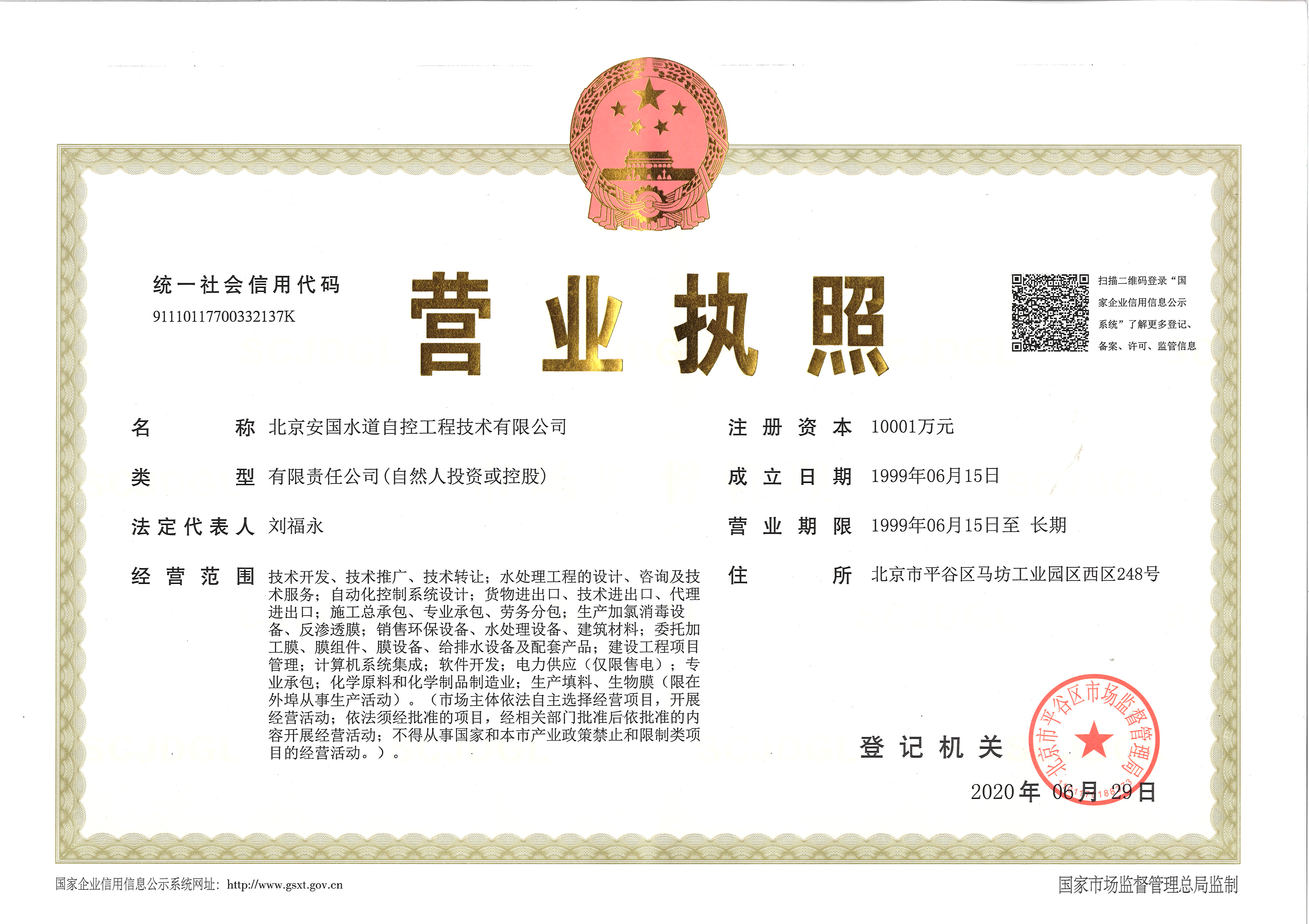 北京安國水道自控工程技術有限公司2015年入駐中國給水排水品牌委員會